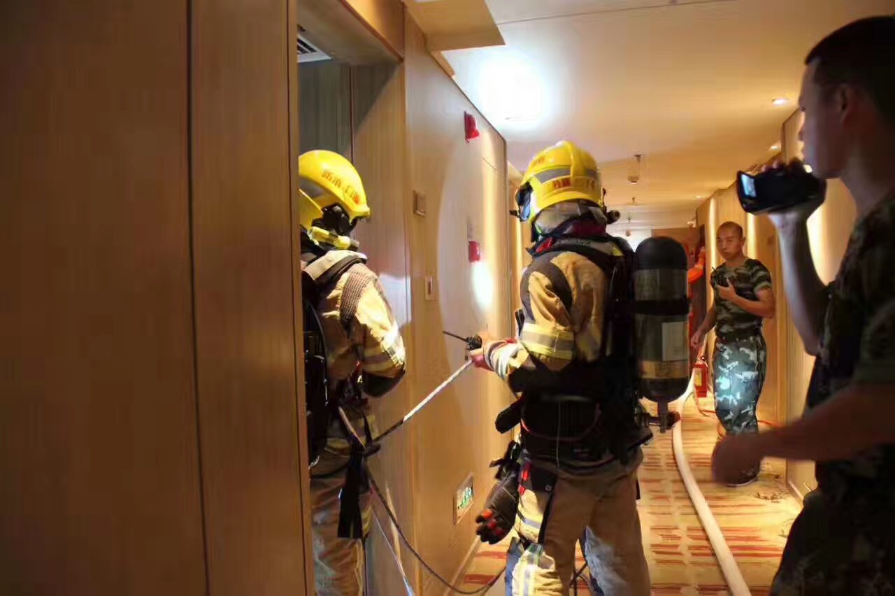 為了提高酒店全員的火災(zāi)防范意識,普及火災(zāi)常識,掌握火災(zāi)逃生自救知識和技能,有效預(yù)防各類火災(zāi)事故,廈門市湖里區(qū)消防總參謀長于2017年7月11日在廈門鉑爾曼酒店對酒店管理人員和龍盾保安人員進(jìn)行消防培訓(xùn)并聯(lián)合開展消防演練,