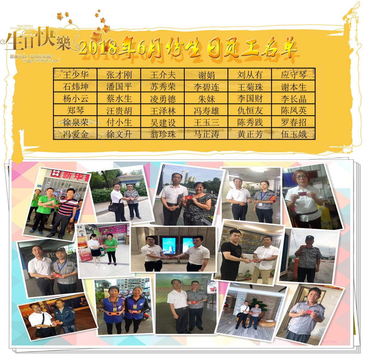 在過去的一年中,公司以穩(wěn)定的步伐向前邁進。公司的發(fā)展離不開您和其它員工默默無聞的工作和努力。公司代表全體員工向以下六月份生日的員工送上衷心的祝福:“生日快樂!愿您工作順心,身體健康,萬事如意”。